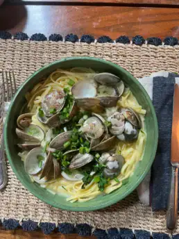 - Add shallots and cook, stirring, until browned, this will happen quickly, about 30 seconds to 1 minute, then add the broccolini and cook, stirring, for about one minute, then add the garlic. Season with a pinch of salt and cook for another minute.